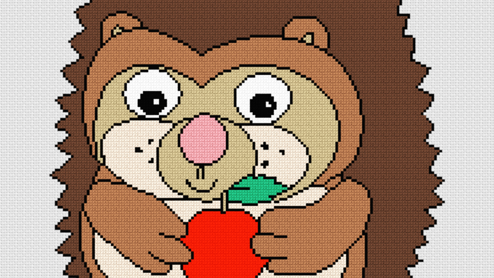 Adorable and simple little hedgehog holding his apple ready for fall decorations. Stitched using all cross stitches and just nine colors. Easy to stitch up on plain white aida or rustic evenwave and will decorate a small pillow or sit in a little frame in the kitchen.